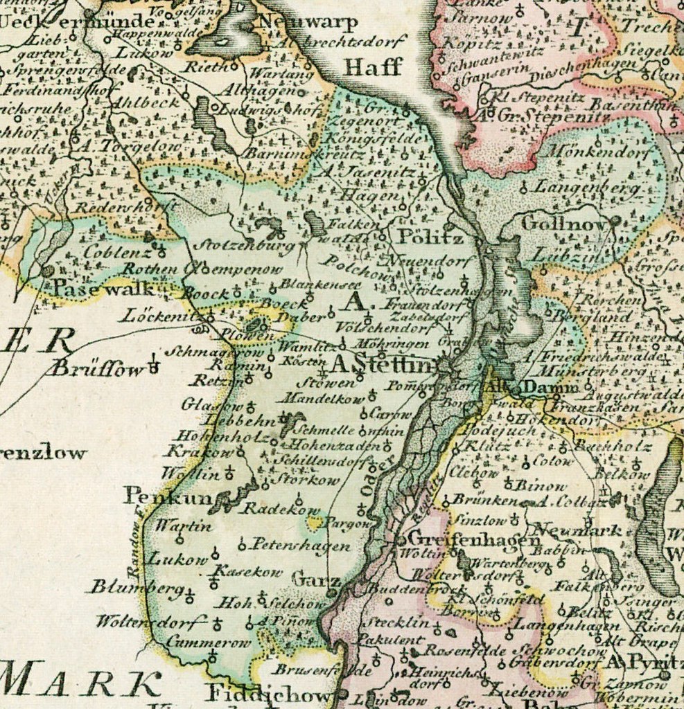 Ausschnitt aus "Landkarte des Herzogtums Vor- und Hinterpommern aus dem Jahr 1794" aus Christian Friedrich Wutstrack.