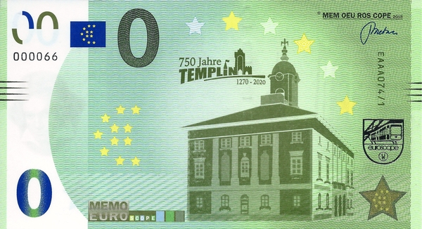 Datum: 2020   Wasserzeichen: ohne   Druckerei:   Größe: 140 mm * 74 mm   Emittent: Stadt Templin   Auflage: 5.000 Stück   Kataloge: |