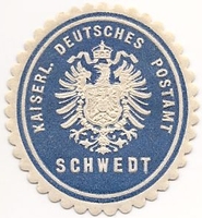 ![]() Kaiserliches Postamt Farbe: kornblumblau Größe: 34 mm * 37 mm Anm.: 1871 - 1889 |