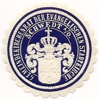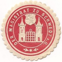 ![]() Magistrat der Stadt Farbe: ziegelrot Größe: Ø 35 mm Anm.: |