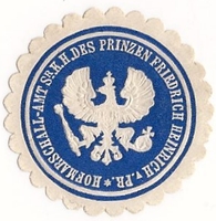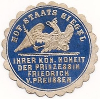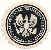 ![]() Prinz Fr. H. von Preußen Farbe: schwarz Größe: Ø 35 mm Anm.: Trauermarke |