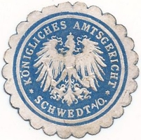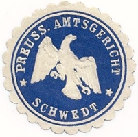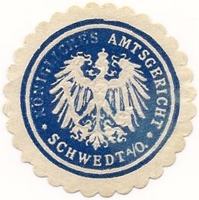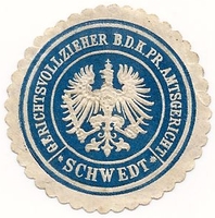 ![]() Königl. Amtsgericht Farbe: hellblau Größe: Ø 33 mm Anm.: 1889 - 1918 |