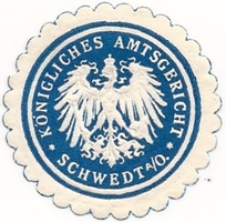 ![]() Königl. Amtsgericht Farbe: Kornblumblau Größe: Ø 35 mm Anm.: 1889 - 1918 |