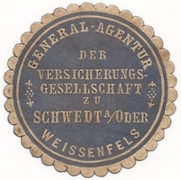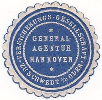 | Siegelmarken | der Hagel- und | Feuer -Versicherungs | Gesellschaft | zu Schwedt A/Oder |